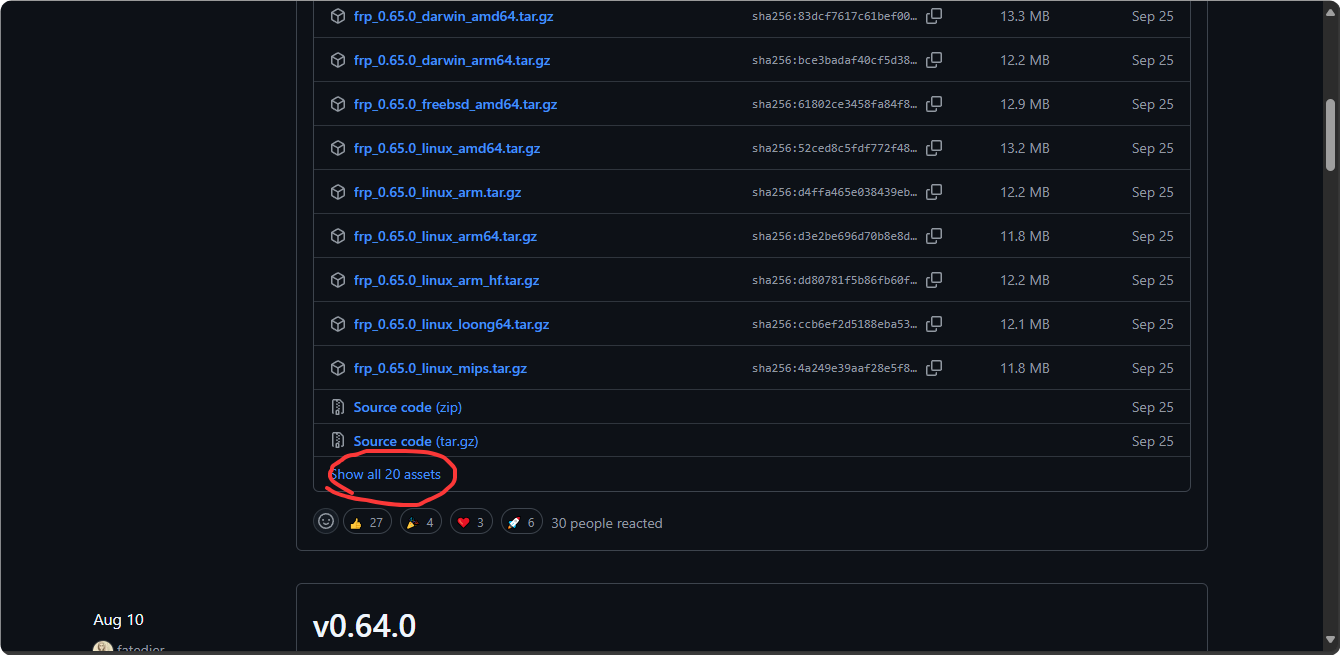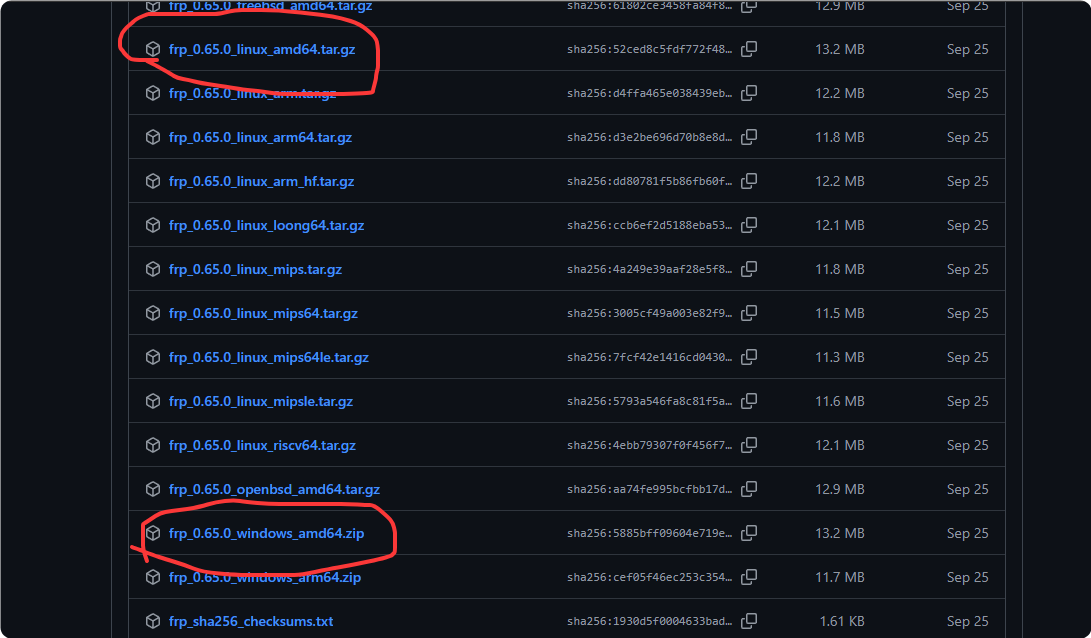 Releases · fatedier/frp先下载对应的版本(版本号不限但是架构要选对,linux版本选择linux版本,windows端可以下载windows版本)