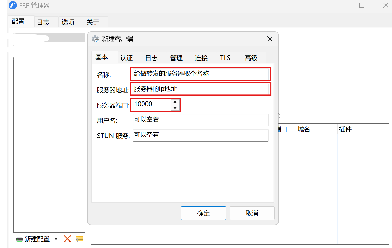 其中,服务器监听端口就是之前在frps.toml里面填的bindPort